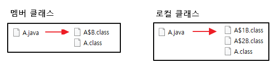 - 바깥 클래스를 컴파일하면 중첩 클래스에 대한 별도의 바이트코드 파일(.class)이 생성된다.